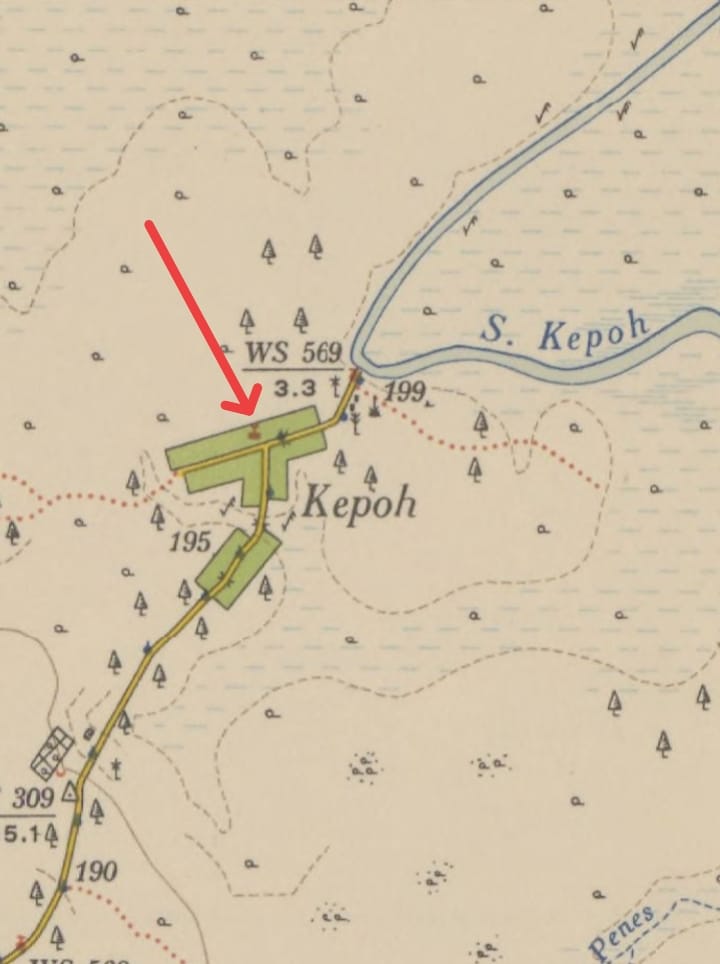 Masjid Al Hidayah, Kepoh yang saat ini di wilayah Kecamatan Toboali memiliki masjid tua yang bisa dilihat peta tahun 1936, Rindik, D D 30,88 opgenomen door den Topografischen Dienst in 1932-1933 Blad 37/ XXVII i.