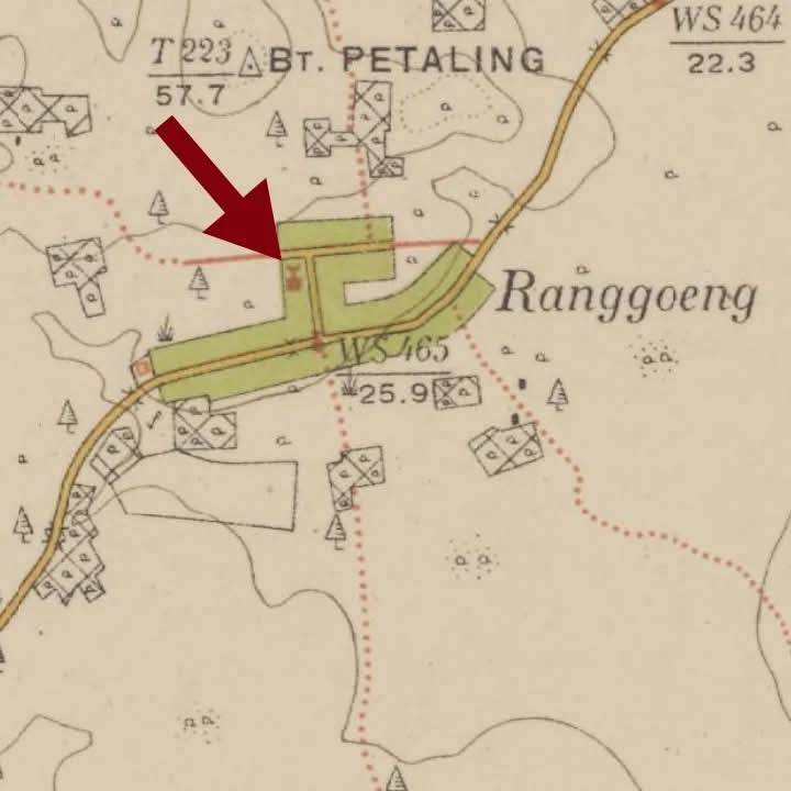 Dalam peta tersebut masjid ditandai warna merah yang berarti sudah permanen. Masjid berada pada posisi yang strategis di tengah kampung walaupun tidak berada di kiri atau kanan jalan raya yang menghubungkan Payung – Gudang melainkan berada di Utara jalan raya (Niet verharde weg, in alle moesson geschikt voor veldartillerie/ Jalan tak beraspal, cocok untuk artileri lapangan). Sebelah Timur dan Utara masjid terdapat jalan tak beraspal yang jika ke Utara lagi menuju Bukit Petaling (57,7). Barat masjid masih berupa hutan karet (rubber).