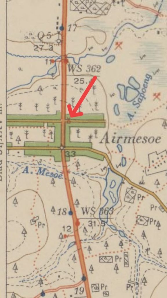 Tampak dalam peta masjid dibangun dengan batu batu yang ditandai dengan warna merah. Masjid berada di sisi timur Jalan Raya Pangkalpinang-Namang dengan lokasi yang strategis. Sebelah Utara masjid ada jalan kecil tidak diaspal (Niet verharde weg waarvan in alle moesson) yang beririsan dengan jalan raya ke sebelah barat. Ke sebelah timur jalan kecil tidak diaspal tersebut samlai ke pemukiman penduduk dan dilanjutkan dengan jalan setapak yang menuju ke kebun melewati Aik Sapoeng.